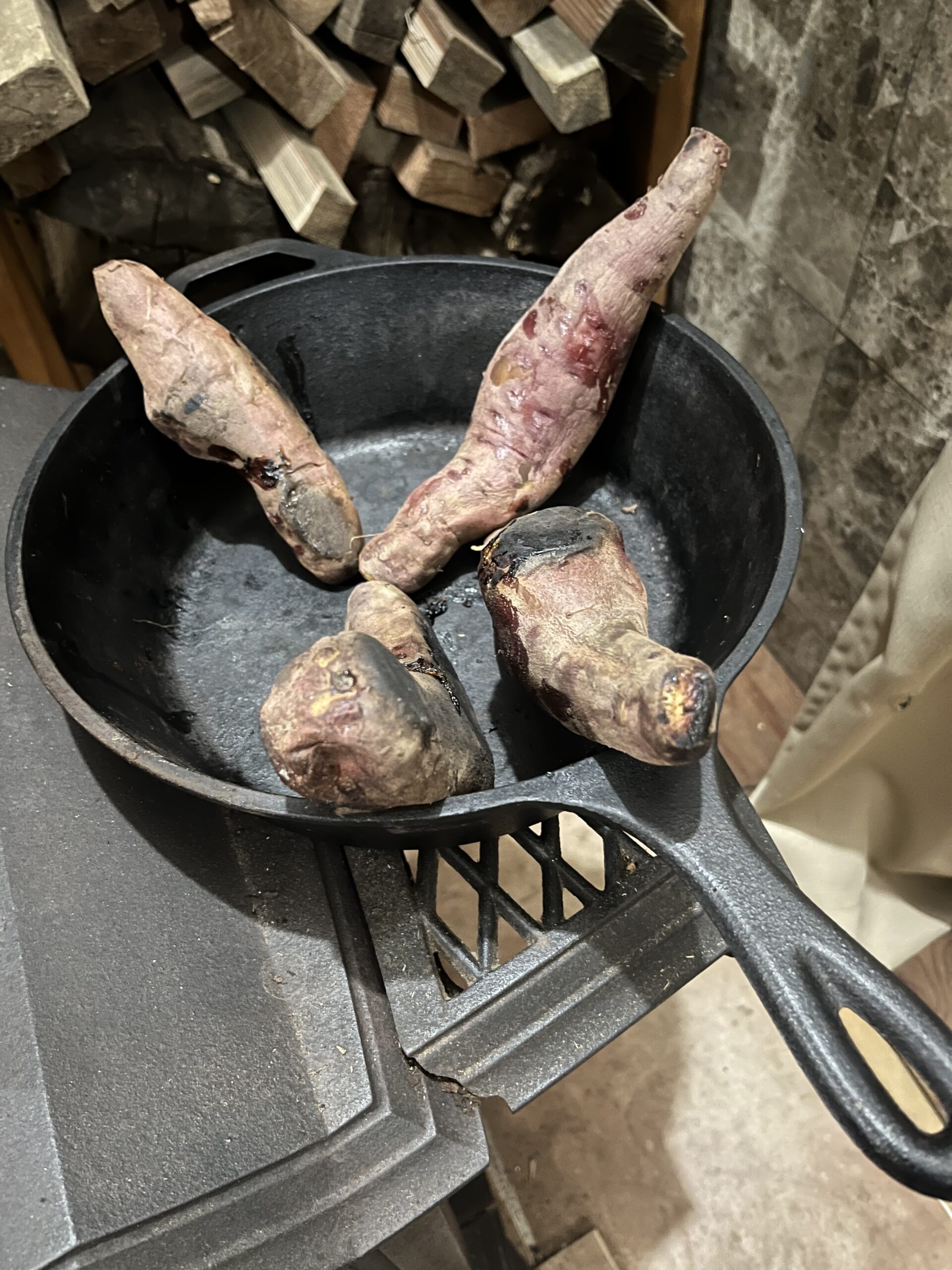 薪ストーブを焚くようになると、安価に入手した段ボール詰めのさつま芋を、薪ストーブに乗せたダッチオーブンに入れ、あとはほったらかし。