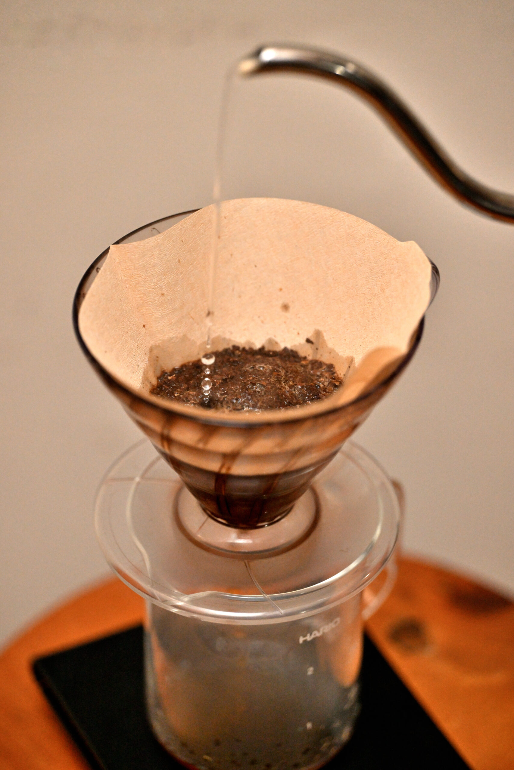 一回目の抽出後、コーヒーが摺鉢状になっているかと思いますが、